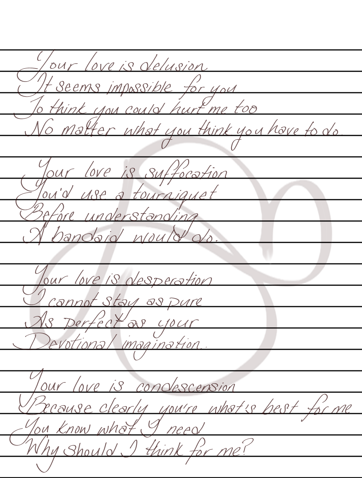 I agree I’m abrasive, I’m not personable, I don’t try hard enough when I should. I’m a terrible friend and not nearly as put together as I would like to be. No defense of this list will follow, because there is none. I ask too much and give too little. I’m far too proud of abilities I don’t have, but without the confidence I’m nothing.
