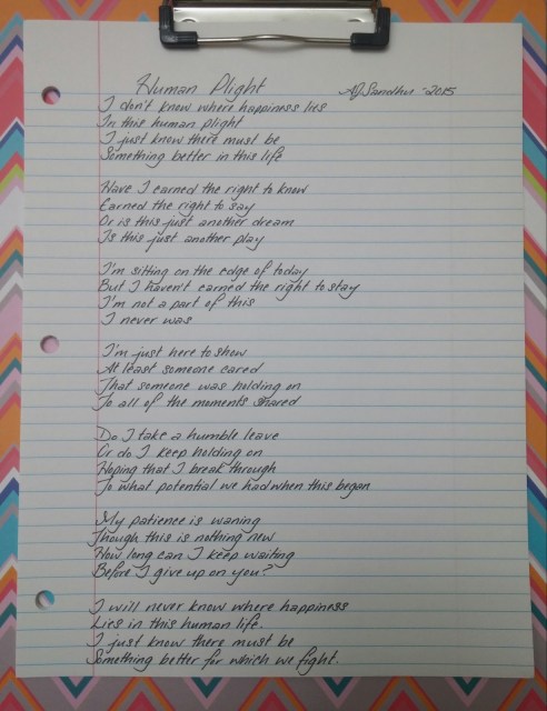 How long do I stay away? How long will it take to fall in love again? Until my hands itch with words burning to see life on paper?